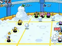 All three Pokémon are controlled simultaneously. The three Pokémon cannot move around in this event, and can only create and throw snowballs. Tapping a Pokémon with the stylus will cause it to make a snowball, and flicking the stylus throws the snowball in the direction of the flick. If the snowball hits an opponent, the hit counter increases by one, and the opponent's fatigue goes up. Larger snowballs can be made by tapping multiple times before throwing; these do not give additional points, but fatigue opponents more if they hit. If a Pokémon's fatigue gets too high, it will faint, making it unable to do anything for a few seconds. Any snowballs that collide with each other destroy each other, regardless of size. This event lasts for 60 seconds.