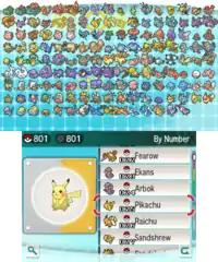 In Pokémon Sun and Moon, the Pokédex is divided into 4 Island Pokédexes, which feature the Pokémon found in each island of Alola (thus sharing species). Combined, they form the Alola Pokédex, which gathers all the Pokémon present in the Island Pokédexes, plus some others, like Legendary Pokémon and Ultra Beasts. The search/sorting function is only present in the Alola Pokédex proper. In addition to the features available in Omega Ruby and Alpha Sapphire, a new option is present, that allows to search for Pokémon whose Alolan Form has been seen. There is no National Pokédex mode in these games.