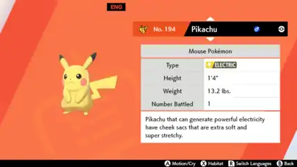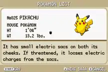 A Pokédex showing Ash's identification in The Electric Tale of Pikachu