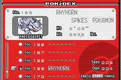 In Pokémon Pinball: Ruby & Sapphire, the Pokédex just displays the number of caught and seen Pokémon like in the core series without having to press any button. All caught Pokémon also count as seen Pokémon, like in the core series games.