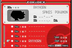 In Pokémon Pinball: Ruby & Sapphire, it's possible for two players to share the Pokédex to some extent by connecting their games with the Game Link Cable and then pressing Start at the Pokédex screen. This brings up a confirmation screen to finish this procedure. Once this is done, if either player has a caught Pokémon that the other player does not have, the name, image, and text entry of that Pokémon become visible to the latter player. However, the image of shared Pokémon is darkened and other information (category, height, weight, and description) is still not shown, indicating that the Pokémon was not caught yet. The category of that Pokémon is shown only if the Pokémon was seen by normal means, therefore the Pokédex may have some shared Pokémon with the category, and other shared Pokémon without the category.