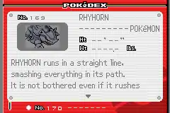 - "POKéDEX" (all caps except for "é", without a space) in the American version, as well as all languages (English, German, French, Italian, and Spanish) of the European version, of Pokémon Pinball: Ruby & Sapphire.