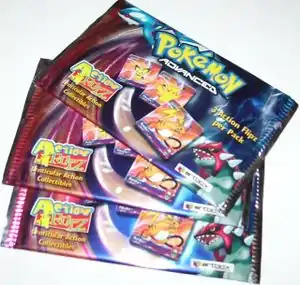 Pokémon Advanced Action Flipz were sold in randomly distributed packets of three. They were also available as part of the Pokémon Masters Club.