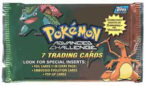 Pokémon Advanced Challenge Trading Cards was a set of Pokémon-themed trading cards manufactured by Topps. There were 90 cards in the set: 89 Pokémon cards and a checklist. Each of these 90 cards also had a foil card version. In addition, there were 28 bonus "chase cards" not included on the checklist: 18 embossed evolution cards and 10 pop-up cards.
