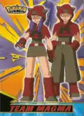 Team Magma | Just as bad as Team Aqua, these two will stop at nothing to get their hands on Groudon, who can calm rainstorms, dry oceans, and create new land. They don't like Team Aqua at all. |