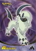 Absol | A non-evolving Pokémon, Absol is still a mysterious creature, one of the very rare Dark type Pokémon. Quick to disappear into the shadows, to see an Absol is quite an event. To catch one is a lifetime achievement. |