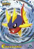 Carvanha | This Water/Dark type Pokémon lives up to its ferocious appearance and can empty swimmers out of any body of water when it's spotted. Only the boldest trainers think of capturing it. |