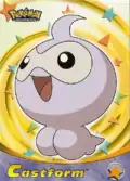 Castform | One of the smallest Pokémon around, this cute non-evolving creature can be trained to mimic different conditions — taking on the characteristics of water, ice, and fire. It's a multi-tasking Pokémon! |