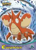 Corphish | This crab-like Water Pokémon makes its home on the bottom of the sea, content to walk along avoiding all other Pokémon and snapping its massive claws at anything that gets too close. |