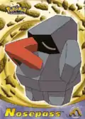 Nosepass | This Pokémon lives in the mountains and caves of Houen, and rarely, if ever, ventures too far from its rocky home. And if you think its nose is something, you should see it sneeze! |