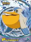 Pelipper | A Water/Flying type Pokémon, Pelipper's most distinguishing characteristic is its huge mouth — which allows it to scoop up its dinner or occasionally drop water on an unsuspecting opponent. Splash! |
