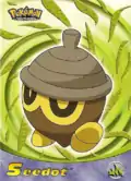Seedot | This sun-loving Grass type Pokémon is quiet and shy, and often gathers in large groups with others. With the right trainer, sun, and water, Seedots can evolve into Nuzleaf, and even Shiftry! |