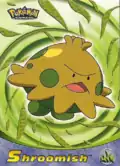 Shroomish | This short, Grass type Pokémon is very shy, as Ash and Masato have learned. Along with living in grass and fields, Shroomish often takes up residence in abandoned buildings. |
