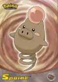 Spoink | A bouncing, Psychic Pokémon, Spoink looks like a pig with a ball balanced on its head. While it is friendly, like other Psychic Pokémon, it prefers to be left alone. |
