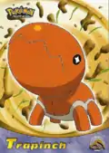 Trapinch | This Ground type Pokémon can chomp, chew, and cut its way through any field or forest with ease. Its evolution is spectacular, as it changes from a small, round creature to a delicate, winged Pokémon. |