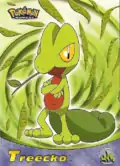 Treecko | This small Grass type Pokémon is unflappable — nothing ever seems to bother it. Facing down the largest Pokémon, nothing can shake the Treecko's calm, cool, and collected nature. |