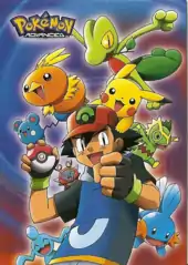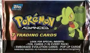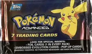 Pokémon Advanced Trading Cards was a set of Pokémon-themed trading cards manufactured by Topps in 2003. There were 90 cards in total: 8 character cards, 81 Pokémon cards, and a checklist card. Each of these 90 cards also had a foil card version. In addition, there were 28 bonus "chase cards" not included on the checklist: 18 embossed evolution cards and 10 pop-up cards.