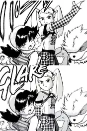 Janine is referred to by her Japanese name, Anzu. This was corrected in following volumes.