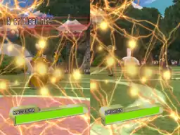 Key differences from other Pokémon console games shown are that the Pokémon can now actually strike at the opponent physically while both Pokémon are rendered on the screen, instead of seeing one Pokémon attacking and then cutting away to the second getting hit by the attack as in previous titles. Moves that do not contact, however, follow the same style as the older games to keep the pace of gameplay up. When an attack that strikes more than one Pokémon is performed, it may hit two of them on screen simultaneously, instead of showing it as the attack striking one Pokémon first then the second Pokémon next. The game also features a 100-Trainer battle when it is completed for the first time.