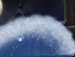 The first shown video of Pokémon Battle Revolution showcased a battle between Red and Leaf on what would become the Neon Colosseum. Interestingly, in said movie, a Groudon uses Hyper Beam on a Deoxys, not only defeating it, but leaving a large gash in the floor of the Colosseum, and a hole in the wall. It is unknown if these environment damages would have remained over the course of the battle, but no such thing is possible in the final game. The camera also appeared to be more dynamic than it is in the final game: when selecting its moves, the camera first focuses on the first Pokémon, then quickly pans over to the second Pokémon to select its moves, then pans over to the Trainer who is shown making an attack command, and the attacks begin. The camera simply cuts between these shots in the final game. The last difference is the HP meter that is shown on screen when damage is done. In the video, the numerical value of the HP is shown on the HP meter, however that does not happen in any game mode in the final version.