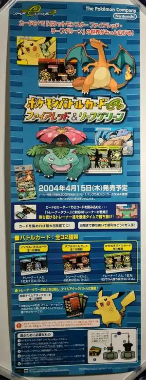 Pokémon Battle e FireRed & LeafGreen (Japanese: ポケモンバトルカードe+ ファイアレッド&リーフグリーン Pokémon Battle Card e+ FireRed & LeafGreen) is the fourth collection of Battle e cards. The cards in this set focus on modifying content at Trainer Tower in Pokémon FireRed and LeafGreen, providing many additional Trainers to battle across three different battle styles, as well as timed challenges. It was released in Japan only.