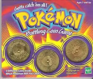The Pokémon Battling Coin Game was a tabletop Pokémon game for two or more players released by Hasbro in the late 1990s. In the Pokémon Battling Coin Game, players battle their Pokémon (in the form of collectible brass coins) against the other player's. Pokémon Battling coins were sold in packs of three.