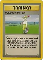 Pokémon Breeder (Japanese: ポケモン育て屋さん Pokémon Day-Care Man) is a Trainer card. It was first released as part of the Base Set.