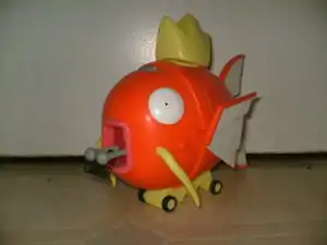 The second toy in the series is Team Rocket's Magikarp submarine, although it is simply referred to (and misspelled) as "Magicarp" on the packaging.