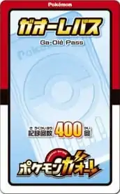 A Ga-Olé Pass (Japanese: ガオーレパス) allows a player to record their activity in Pokémon Ga-Olé, and function much in the same way as Tretta Reports in Pokémon Tretta. Like Tretta Reports, Ga-Olé Passes are IC cards that have a limit as to how many times save data can be recorded on them. Promotional Ga-Olé Trial Version Passes have a limit of 50 saves, but most retail varieties have a limit of 400. Once the maximum allocation of data saves has been reached, players can transfer their data to a new Ga-Olé Pass. Ga-Olé Passes can be purchased separately for ¥500.