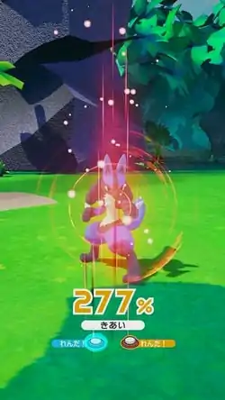 During the animation that plays when the player's Pokémon attacks, the player will be prompted to press the console buttons as fast as possible in effort to raise their Fighting Spirit (Japanese: きあい). This value starts at 50%, but can be raised significantly over the course of 3 rounds, should the player continue. Raising Fighting Spirit can increase the power of moves and bonuses from the Attack Roulette.