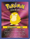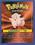 Pokémon Game Tip Cards were cards distributed in boxes of Kellogg's cereal in Canada in 1999. There were 20 cards in total, with packets of three random cards per cereal box. Each card features a Generation I Pokémon and a tip relating to that specific Pokémon. Most of the tips were related to the then-recently released Pokémon Snap, although other cards contained tips for capturing the Pokémon in Pokémon Red, Blue, and Yellow. As they were created for the Canadian market, the reverse of each card contained the same game tip in French, as French and English are Canada's two official languages.