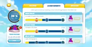 Players could complete achievements by going to their badges page and selecting the Achievements tab. Certain achievements were only available during their corresponding events. Each Achievement has 3 tiers: Bronze, Silver, and Gold. Once Gold is completed, the player can open a Legendary Pouch.