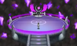 Acerola's chamber can be accessed through the middle-right path of the central chamber. In Acerola's chamber, she greets the player and tells them that she's there in place of Nanu, who refused the invitation to be part of the Elite Four. Two purple ghastly flames emerge from the pedestal behind Acerola after the player enters to close off the arena.