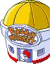 The Pokémon Mart Gate is closed by default since the start of the game. The player opens the Gate by hitting it once with the ball. However, it's not possible to enter the Pokémon Mart and buy anything at this point, because the ball falls down without entering it. When the player shoots the ball once more in the direction of the Mart, the ball passes through the Gate and enters the Mart normally. If the player enters the Mart and leaves without buying anything, the Gate remains open; if the player buys something from the Mart, the Gate closes again.