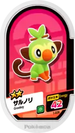 The types attributed to Pokémon are indicated by symbols to the right of their name on the obverse of tags. A Pokémon may have either one or two types, and determine what types of move it will be weak against or resistant to in battle. The types featured in Pokémon Mezastar are the same as those found in the core series and share their individual strengths and weaknesses. Most Pokémon can use only one move, as opposed to four in the core series, though some also have access to Z-Moves, Max Moves, and G-Max Moves. The move name and its type are present on the reverse of tags. The damage category of the move is also highlighted and linked to the relevant stats.