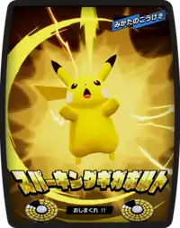 Pokémon Mezastar (Japanese: ポケモンメザスタ) is an arcade game developed by Takara Tomy A.R.T.S. and Marvelous, which also developed the Pokémon Battrio, Pokémon Tretta, and Pokémon Ga-Olé arcade games. Pokémon Mezastar was officially announced in the May 2020 issue of CoroCoro released on April 15, with more details revealed in a press release on August 12. It was intended to be launched in Japan during summer 2020, but was delayed until September 17 due to the COVID-19 pandemic.