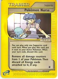 Pokémon Nurse (Japanese: ポケモンナース Pokémon Nurse) is a Supporter card. It is part of the Expedition Base Set.