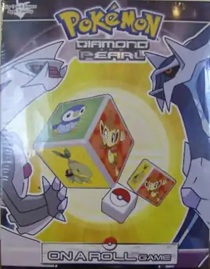 Pokémon On A Roll is a board game manufactured by Pressman Toy. It is similar to the Pokémon Yahtzee Jr. games, but has slightly different gameplay and does not bear the Yahtzee name.
