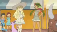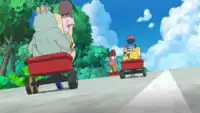 During the competition, Lana, Mallow, and Sophocles were eliminated for dropping the pancakes, while Kiawe did not finish the race due to Turtonator being too heavy for him to carry in the second section. Jessie and James were also disqualified; the former due to Mimikyu using Shadow Ball and the latter for competing with Meowth and Wobbuffet disguised as a Bewear, which was exposed by a real Bewear. Ash tied with Nina, the winner of the previous year's competition, as his Pikachu and her Alolan Raichu reached the finish line at the same time, while Samson Oak was declared the big winner together with his Komala.