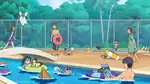 The play area consists of many locations where Pokémon and Trainers can relax and have fun, including a swimming pool, hot springs, two water-slides where Pokémon can go down in a raft, and a water volleyball net.