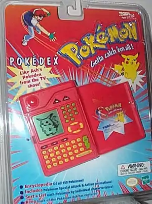 The Pokémon Pokédex is a toy released by Tiger Electronics and Hasbro in the late 1990s. It is a Pokédex-shaped toy which includes information on all Generation I Pokémon except for Mew[1], who was not yet revealed to the public at the time the toy was released.