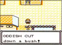 On page 31 of Nintendo Player's Guide for Pokémon Red and Blue, a different text string for using Cut on a tree in the overworld was used. It reads "Oddish Cut down a bush!", being used in a screenshot when cutting down the tree next to the Vermilion City Gym. The fact that Cut can also be used to destroy areas of tall grass may have been the reason for the change to "{Pokémon} hacked away with Cut!" in the final releases.