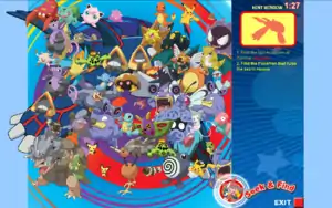 Pokémon Seek & Find is one of three Flash-based computer games that were developed for the 10th Anniversary Perdue Farms promotion. The other two games are Pokémon Team Rocket Blast Off and Pokémon Poké Ball Launcher. Pokémon Seek & Find is a simple game where the player must follow cues to find one Pokémon among a group of Pokémon.