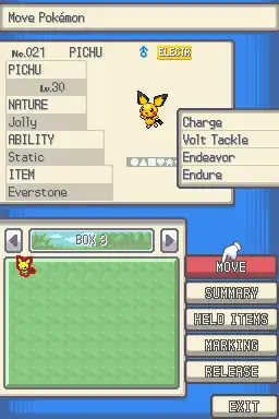 - Group Move Mode, or Tray: allows any rectangular group of Pokémon to be selected, picked up, and moved together.