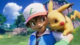 The camera then runs across Charizard while using Flamethrower, Blastoise while using Hydro Pump and Venusaur; before Pikachu runs between Ash and a Lass and jumps. The next scene introduces Professor Oak, Delia Ketchum, Officer Jenny and Nurse Joy, as they nod, the camera then shows a giant Charizard using Flamethrower, and Ash and his friends hide behind a boulder, later, a Squirtle is seen running towards Ash, followed by a hug.