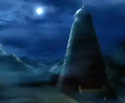 The Pokémon Tower appeared in Haunting My Dreams. It was the home to a group of Gastly and their leader, a giant Haunter called the Black Fog. After the Black Fog had sucked out Sabrina's soul with its Dream Eater attack, Ash led a group of Trainers to Lavender Town, their plan being to capture the Black Fog in a giant Poké Ball. Although the capture initially seemed successful, the Black Fog escaped by using Explosion to destroy the capture device from the inside. This act, however, left it severely weakened and vulnerable to regular Poké Balls. With this advantage on his side, Ash chased the Black Fog into the tower and managed to corner it, attempting to catch the giant Gas Pokémon with an Ultra Ball. However, just before the ball could make contact with the Black Fog, it used Self-Destruct, killing itself and collapsing the tower. With its death, Sabrina recovered and teleported to the site. It was then revealed that past people had treated the Black Fog as a god, and, having gotten used to this treatment, it had chosen to kill itself rather than be caught by a human. Ash, though, was left saddened for having wasted all of his allowance on the Ultra Ball that he had just lost.