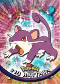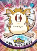 Raticate | This is the final stage of evolution for Rattata. It uses its long whiskers to maintain its balance, and it slows down if its whiskers are cut off. A terrifying Pokémon when trained properly, Raticate's fear inspiring look can surprise all but the most determined opponents. In "Battle Aboard the St. Anne," Ash and company meets a distinguished gentleman and Ash trades his Butterfree for the gentleman's Raticate. First appearance: Episode 15—"Battle Aboard the St. Anne" |
