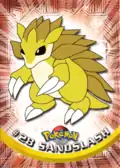 Sandslash | This is the final stage in the evolution of Sandshrew. The Pokédex has almost no information regarding this ground Pokémon, and the only known facts about Sandslash are as follows: Sandslash curls up into a spiny ball when it feels threatened, and it can roll while curled up to attack or to escape. First appearance: Ash has not yet encountered a Sandslash |