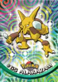 Alakazam | Alakazam is the final evolved state of Abra. Its intelligence quotient is said to be near 5,000, an attribute that gives it remarkable psychic powers. Ash and friends have never been face to face with one of these super-smart Pokémon, and aren't in any hurry either. First appearance: Ash has not yet encountered an Alakazam |