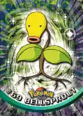 Bellsprout | The official Pokédex database regarding this Pokémon contains the following: Appearances can be deceiving from this innocent-looking but carnivorous Pokémon that traps and eats bugs. Bellsprout uses its rooted feet to soak up needed moisture from the soil. In "Bulbasaur and the Hidden Village," Ash and Co. find a Bellsprout resting in the safe confines of the village where it can heal and grow. First appearance: Episode 8—"Bulbasaur and the Hidden Village" |